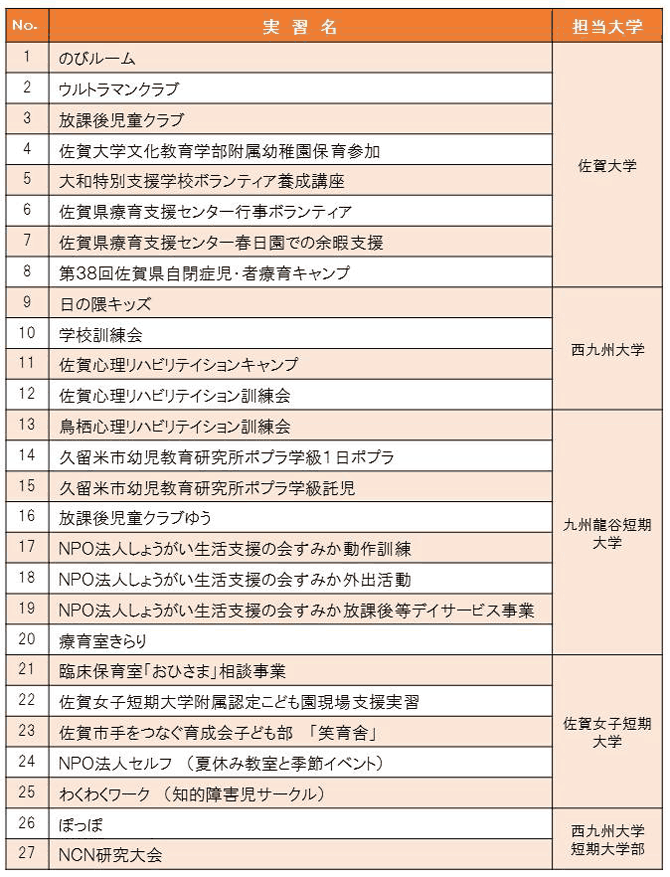 30時間以上の実習を通して、基本的な支援を学修することを目的としています。実習先や実習内容については、担当教員と相談しながら、受講生が選択します。